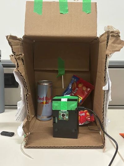 - A YOLOv5 custom model trained on 300 manually collected images to detect various food items